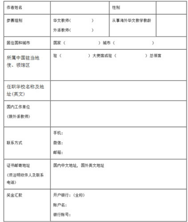 四、參賽對象:海外華文教師和中國國務(wù)院僑務(wù)辦公室、 中國海外交流協(xié)會派出的在任外派教師。