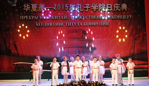 范先榮大使在演出開(kāi)始前發(fā)表致辭,他表示,希望更多學(xué)生來(lái)學(xué)習(xí)漢語(yǔ),了解中國(guó)文化,并祝愿孔子學(xué)院不斷發(fā)展壯大。激昂、歡快的舞蹈《大地歡歌》拉開(kāi)了慶典的序幕。塔吉克斯坦國(guó)家武術(shù)協(xié)會(huì)帶來(lái)的《精忠報(bào)國(guó)》武術(shù)表演精彩絕倫。俄羅斯塔吉克斯拉夫大學(xué)的學(xué)生表演了古代服飾秀《東方韻典》,動(dòng)感的兒童歌舞串燒《如果感到幸福你就拍拍手》《小蘋(píng)果》展現(xiàn)出孩子們對(duì)漢語(yǔ)的熱愛(ài),觀眾們不時(shí)報(bào)以歡呼和掌聲。隨后的第二輪演出在大合唱《茉莉花》和《明天會(huì)更好》中結(jié)束。