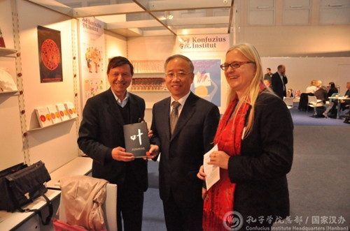 據(jù)了解,中國駐法蘭克福總領事梁建全曾于書展首日來到孔院展臺參觀并鼓勵參展人員辦好展覽。德語區(qū)的兄弟孔院對法蘭克??鬃訉W院給予大力支持,紛紛將孔院出版的書籍送來參展。