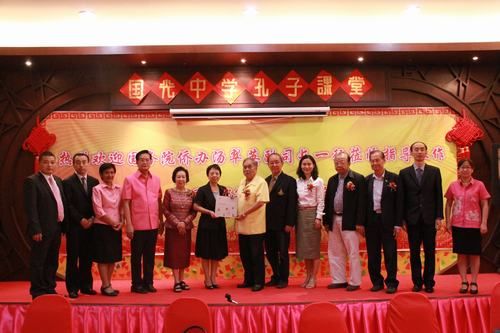 泰南華文民校協(xié)會秘書、中文負責人魏光磊在會上也指出,十分感謝中國國僑辦文化司訪問團,對泰南華文教育的支持。泰南華文民校聯(lián)誼會在孔子課堂配合下有條不紊地組織各種活動,今年來有400多名泰國優(yōu)秀學生去中國參加尋根之旅和夏令營活動,在每年假期都會培訓本土教師,并且有150多位老師曾去中國參加培訓,提升了他們華文教育的水平,也推動了泰南華文的發(fā)展。尤其是國光中學孔子課堂“葉星明泰中文化中心”落成,更好地推動泰南華文的提升,孔子課堂將與中國西南大學合作,在文化中心開設1+3大學項目班、職業(yè)漢語培訓班、HSK網(wǎng)絡考試中心和留學培訓中心等,服務以合艾為基點的泰南華文教育事業(yè)。