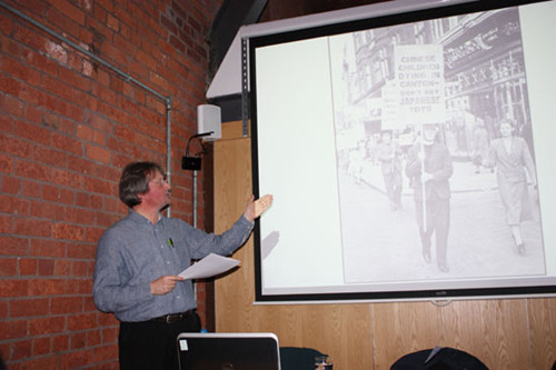 布坎南教授作關(guān)于二戰(zhàn)前后中英關(guān)系的講座。他運(yùn)用一系列翔實(shí)的史料和數(shù)據(jù),介紹了戰(zhàn)時(shí)國(guó)際反法西斯陣線的重要作用,概述了中國(guó)和英國(guó)左翼團(tuán)體的內(nèi)在關(guān)聯(lián),闡釋了涉及中英兩國(guó)的多個(gè)重大歷史事件背后的動(dòng)因——如:通過(guò)剖析“滇緬公路(Burma Road)危機(jī)”批判了英國(guó)政府某些高層人士的對(duì)日綏靖政策,論證了重新開(kāi)通滇緬公路的軍事價(jià)值、道德意義和歷史意義。