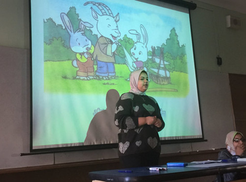 經(jīng)過激烈的角逐,Lina和Menna講述的《龜兔賽跑》憑借標(biāo)準(zhǔn)的發(fā)音、流暢的講述和形象的動作演示,奪得一等獎。