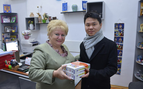 表演結(jié)束后,志愿者教師鐘濠洋代表孔子學(xué)院向Aristocratic Cats幼兒園全體人員致以節(jié)日的問候,并向幼兒園贈送了漢語和羅馬尼亞語雙語教材。園方表示非常感謝孔子學(xué)院在幼兒園的教學(xué)工作,期望明年雙方能夠有更加深入的合作。