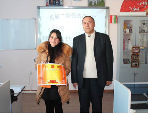 塔吉克斯坦國立師范大學(xué)英漢系副系主任Samiddin Jomatov出席此次比賽,孔子學(xué)院教學(xué)副院長馬馳與其他三位漢語教師擔(dān)任比賽評(píng)委。