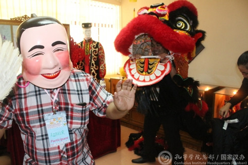 參觀結(jié)束后,東盟師生用剛剛學(xué)會(huì)的漢語(yǔ)對(duì)孔院老師說(shuō):“謝謝你們!再見(jiàn)!”來(lái)自新加坡的美籍教師RON BERNARD先生曾在北京任教兩年,他說(shuō)道,“孔子學(xué)院就像一個(gè)濃縮的中國(guó),在這里能看到中國(guó)的戲服、西安的兵馬俑模型、中國(guó)的樂(lè)器,和我在中國(guó)生活時(shí)看到的一模一樣。很高興能在東盟再次看到這些中國(guó)文化的精華?!?/p>