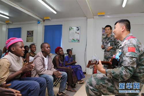 中國赴馬里維和部隊教當?shù)貎和瘜W漢語唱中文歌