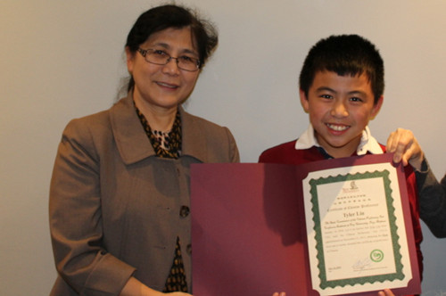 美國特洛伊孔院為中小學(xué)漢語考試通過者頒發(fā)證書