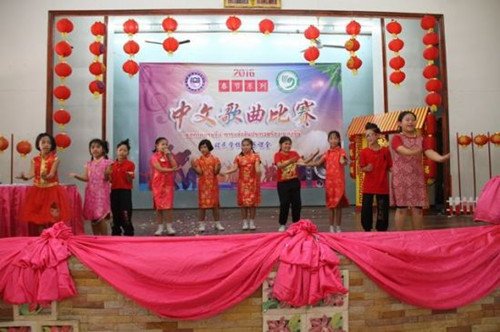 一年級(jí)戊班的許珍珍同學(xué)一首《甜蜜蜜》引起了全校學(xué)生集體大合唱,把現(xiàn)場氛圍推向了高潮。四年級(jí)丁班的小妹同學(xué)之前曾經(jīng)獲得過泰國泰文歌曲大賽三等獎(jiǎng),此次演唱中文歌曲《酒干倘賣無》更是表現(xiàn)非凡,表演極富感情,贏得了現(xiàn)場觀眾的陣陣掌聲。