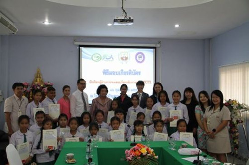 高蟬花首先對校長Mr. Thakdanai Phetpree表示祝賀,然后頒發(fā)了YCT考試成績報告單和優(yōu)秀輔導教師榮譽證書。隨后張昌怡老師和Mr. Thakdanai Phetpree就深化漢語合作事宜進行了深入的交流,Mr. Thakdanai Phetpr對醒民課堂的大力支持表示感謝,并介紹了本校情況,表達了擴大漢語考試規(guī)模、設立分考場的愿望。最后,在其陪同下,醒民一行參觀了漢語教室和最新投入使用的教學大樓。張老師就考場布置要求和監(jiān)考教師標準等具體細節(jié)進行了指導。