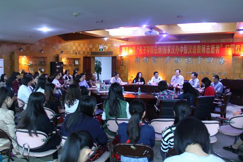 中國僑網(wǎng)4月14日電 據(jù)暨南大學華文學院網(wǎng)站消息,4月12日下午,暨南大學2016年“孔子學院總部/國家漢辦國際漢語教師中國志愿者”歸國歡迎會在華文學院辦公樓第一會議室隆重召開,歡迎暨南大學2015-2016學年度奔赴12個國家的49名歸國志愿者,今年5月即將赴任的各國志愿者也參加了歡迎會,新老志愿者進了深入的交流。