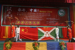 本次總決賽以“夢想點亮未來”為主題,10名參賽選手通過翻譯筆試、文化知識問答、主題演講和才藝表演四個環(huán)節(jié)角逐勝負。舞臺上,選手們或吟詩誦賦,謳歌中布友誼,或揮毫潑墨,抒寫他們的“中國夢”、“漢語夢”。熱情的布隆迪大鼓“混搭”蒼勁的南拳,津味兒十足的相聲融入布隆迪濃郁鄉(xiāng)土氣息的幽默。書法、剪紙、武術、民歌、曲藝,選手們清晰流利的中文表達和豐富多彩的才藝展示給人印象深刻,一再引得觀眾滿堂喝彩。