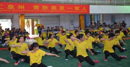 中國僑網(wǎng)5月26日電 據(jù)中國華文教育網(wǎng)站消息,日前,2016年菲華學生“中囯尋根之旅”學中文夏令營舉行結(jié)業(yè)典禮,193位領隊老師、學生營員歡聚在泉州南少林國際學校套路訓練館,以歌舞的形式,匯報兩個月來的學習收獲。
