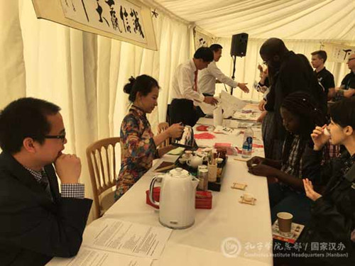 除此之外,孔子學院教師和志愿者在考文垂大學校園還開展了豐富多彩的文化體驗活動,中國剪紙、中國結、書法寫作、茶藝表演、京劇臉譜繪制吸引了該校師生和當?shù)鼐用袂皝碛^摩、體驗。廣場上的舞獅、功夫扇、太極劍表演更是吸引了觀眾的眼球,中國元素活躍在考文垂大學校園。(姚李偉)