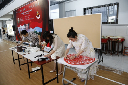 本次大樂(lè)園是北京華文學(xué)院第一次承辦中國(guó)海外交流協(xié)會(huì)的大樂(lè)園項(xiàng)目,學(xué)院領(lǐng)導(dǎo)非常重視本次活動(dòng),院長(zhǎng)周虹親自組建了籌備組,學(xué)院多個(gè)部門(mén)在該團(tuán)出發(fā)前做了大量細(xì)致認(rèn)真的準(zhǔn)備工作,保證了大樂(lè)園活動(dòng)的順利成行。大樂(lè)園教師隊(duì)伍中除了北京華文學(xué)院的八位老師外,還邀請(qǐng)了來(lái)自石家莊外國(guó)語(yǔ)學(xué)校、石家莊幼兒師范高等??茖W(xué)校的六位教師,共同為營(yíng)員們開(kāi)設(shè)中華文化、中國(guó)地理、中國(guó)歷史、朗誦、聲樂(lè)、書(shū)法、國(guó)畫(huà)、手工、舞蹈、武術(shù)等十門(mén)課程。
