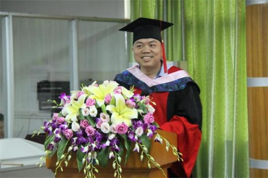首位華文教育博士畢業(yè)生唐根基發(fā)表畢業(yè)感言。他表達(dá)了自己經(jīng)過九年的寒窗苦讀,終于迎來了畢業(yè)的激動(dòng)心情。他憶起2007年獲得了中國(guó)國(guó)務(wù)院僑辦中國(guó)華文教育基金暨南大學(xué)華文學(xué)院華文教育系華文教育專業(yè)本科獎(jiǎng)學(xué)金,成為32年印尼政府封閉中華文化之后首位獲得此寶貴獎(jiǎng)學(xué)金的巨港華人時(shí)的興奮激動(dòng)以及感恩之情。他強(qiáng)調(diào),學(xué)習(xí)讀書是為了將來畢業(yè)后為社會(huì)、國(guó)家、為自己的行業(yè)做一點(diǎn)有意義的事情,將盡心盡力助人成功。(陳容華、林若)