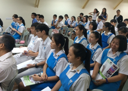 12日上午,代表團拜訪了校董古潤金先生母校,知名獨中循人中學,雙方介紹了開展教育工作的情況,并就循人中學學生赴中國大陸求學、特別是暨南大學求學的情況進行了交流。交流會后,循人中學安排了暨南大學招生宣講會,此前,循中已專門收集了畢業(yè)生中,有意赴中國、特別是赴暨南大學求學的學生意向,大概有50多名學生參加了宣講會,代表團楊萬兵、蔡麗、方李瑾等先后登臺,介紹了暨南大學的歷史、優(yōu)勢專業(yè)、針對馬來西亞學生的招生優(yōu)惠、獎助學金投放,特別是華文學院開設的華文教育專業(yè)的招生政策等情況,學生們聽得津津有味,在會上還頻頻提問,了解關心在暨大學習生活方面的問題。