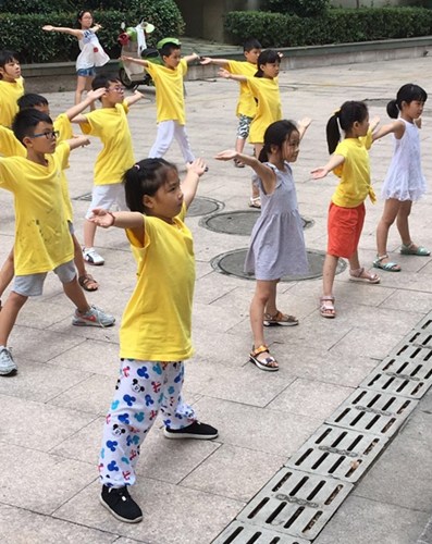 此次“尋根之旅”夏令營開設(shè)的武術(shù)課程,旨在通過教導(dǎo)營員們了解武術(shù)禮儀、掌握武術(shù)的基本動(dòng)作,來讓他們體會(huì)中華武術(shù)。每次武術(shù)課堂上,營員們學(xué)習(xí)刻苦,老師也教得認(rèn)真。課程開始前,老師一般會(huì)將營員們按身高分為5列小隊(duì),以安全距離排開。列隊(duì)完畢后,老師開始帶營員們做熱身運(yùn)動(dòng),讓他們先活動(dòng)筋骨,熟悉一下即將開始的課程。接著,營員們就跟著老師練習(xí)如何抬腿、如何伸展、如何出拳。營員們對(duì)每一個(gè)動(dòng)作都表現(xiàn)出極高的熱情,在老師不斷地示范、修正及自己的不斷練習(xí)之下,他們的動(dòng)作越來越標(biāo)準(zhǔn),對(duì)學(xué)習(xí)武術(shù)的熱情也越來越高漲。