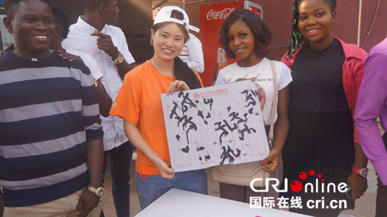 值得一提的是,在賽場(chǎng)邊,孔子學(xué)院的老師們還精心布置了中國(guó)文化展角,筆墨紙硯一字排開,讓尼日利亞學(xué)生體驗(yàn)寫漢字。
