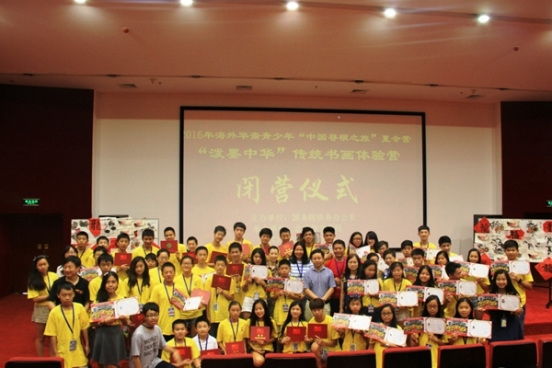中國(guó)僑網(wǎng)8月10日電 據(jù)北京華文學(xué)院網(wǎng)站消息,8月6日上午,由國(guó)務(wù)院僑辦主辦、北京華文學(xué)院承辦的2016年海外華裔青少年“中國(guó)尋根之旅”夏令營(yíng)——“潑墨中華”傳統(tǒng)書(shū)畫(huà)體驗(yàn)營(yíng)閉營(yíng)儀式在北京舉行。