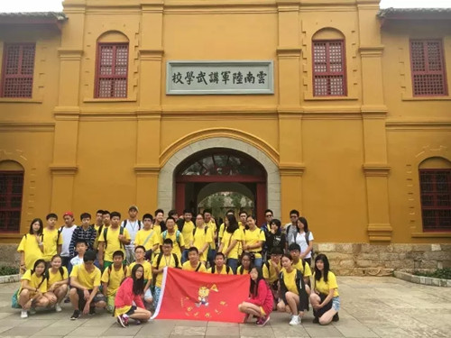 21日,2016“尋根之旅·七彩云南”夏令營(yíng)全體營(yíng)員前往云南陸軍講武堂參觀游覽。云南陸軍講武堂的展覽以“百年軍校 將帥搖籃”為主題,分為“講武堂的創(chuàng)辦”、“輝煌業(yè)績(jī)”、“將帥錄”三部分,以相應(yīng)的圖片加文字的形式再現(xiàn)昔日講堂的輝煌。