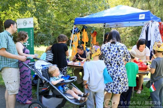 孔院在主園區(qū)搭建了文化展臺(tái),為民眾們準(zhǔn)備了豐富的文化體驗(yàn)活動(dòng),如起中文名字并制成精美書法書簽,試穿中國傳統(tǒng)服裝,制作中國燈籠等。(供稿:晉小娜;供圖:章焱飛、顏瓊)