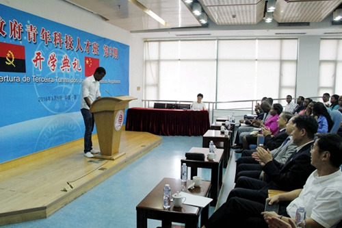 2014年入學(xué)的首期18位學(xué)員已完成兩年的語(yǔ)言學(xué)習(xí),今年9月轉(zhuǎn)入機(jī)電及自動(dòng)化學(xué)院、信息科學(xué)與工程學(xué)院、土木工程學(xué)院等進(jìn)行專業(yè)學(xué)習(xí)。開(kāi)學(xué)典禮上,入讀土木工程學(xué)院的艾佑寶代表老生用中文發(fā)言,“金秋九月,丹桂飄香”“白驥過(guò)隙,時(shí)光荏苒”等優(yōu)美詞句從他口中流利地說(shuō)出,立即贏得了現(xiàn)場(chǎng)熱烈的掌聲。他表示,將繼續(xù)努力學(xué)習(xí),不辜負(fù)安哥拉總統(tǒng)基金會(huì)以及學(xué)校領(lǐng)導(dǎo)、老師的期望。