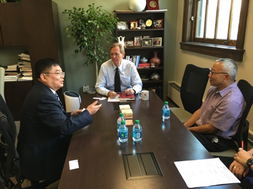 雙方還就一些交流合作方面的細(xì)節(jié)問題,進(jìn)行討論并交換了意見。會談結(jié)束后,代表團(tuán)一行還參觀了猶他大學(xué)圖書館、英語學(xué)院、人文學(xué)院和孔子學(xué)院。