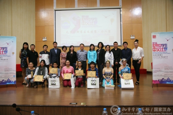 經(jīng)過激烈的角逐,華夏中文學(xué)校代表隊(duì)奪得了團(tuán)體比賽冠軍,肯尼迪中學(xué)中學(xué)(John Kenney College)代表隊(duì)和愛冰女子中學(xué)(Ebene Girls SSS)代表隊(duì)分列第二、三名。華夏中文學(xué)校的朱月莉以精彩的演講和優(yōu)美的傣族舞贏得了個(gè)人賽第一名??夏岬现袑W(xué)的康思茹獲得亞軍,黃嘉億及Gmd Atchia中學(xué)的雷甜甜獲得三等獎(jiǎng)。松雁群參贊為獲獎(jiǎng)選手和隊(duì)伍頒發(fā)了獲獎(jiǎng)證書和獎(jiǎng)品,為全體選手頒發(fā)了參賽證書和紀(jì)念品。