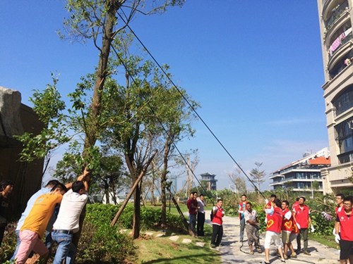 17日,臺風(fēng)登陸廈門后的第二天,在開展了一天的校園重建工作后,華僑大學(xué)校團(tuán)委立即組織了校青協(xié)和材料學(xué)院的67名志愿者,前往集美新城環(huán)杏林灣畔和水晶湖郡小區(qū),參與集美區(qū)災(zāi)后重建工作,在烈日下抬樹枝、掃垃圾。