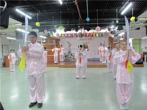 典禮上,張禮為營員頒發(fā)學習證明書,贈送紀念品。緊接著,秋令營的匯報表演開始。演出節(jié)目豐富,包含舞蹈、歌曲、樂器、武術(shù)等多種類型。每一位參與演出的營員都非常認真,把自己半個月的學習成果用心地表現(xiàn)出來,演出反響熱烈。