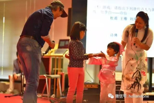 這是一場由生動有趣、臺上臺下互動交融的唐詩文化推廣活動。荷蘭烏特勒支中文學校華裔童聲合唱團帶來的童聲合唱《春曉》和《詠鵝》為這次活動揭開序幕。這支合唱團團員均為華裔兒童,年齡在5到9歲之間,吐字清晰且富有感染力的童聲立即為本次活動注入活力。