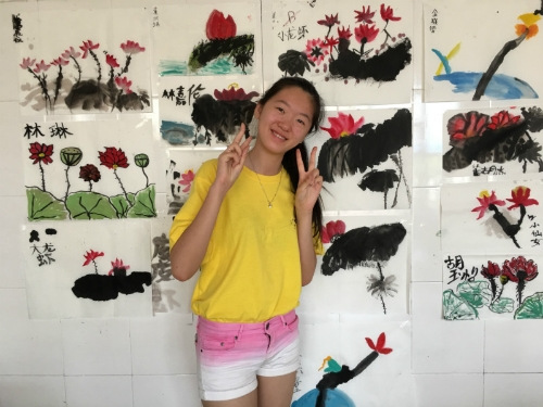 在認(rèn)真聽(tīng)完國(guó)畫(huà)基本的運(yùn)筆、用墨、用水方法講解后,營(yíng)員們開(kāi)始自己作畫(huà)。雖然他們以前從未接觸過(guò)水墨丹青,但架不住濃厚的興趣,每一筆都畫(huà)得異常認(rèn)真,毫不馬虎。不消得幾刻鐘,各式各樣的荷花就躍然紙上,栩栩如生。