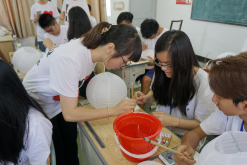 課程開始,老師以一個(gè)謎語(yǔ)導(dǎo)入"身上紅彤彤,心里亮晶晶,節(jié)日上門樓,臉上笑盈盈”,華裔青少年們輕松地猜出了謎底是燈籠。之后,老師又向孩子們介紹了燈籠的起源、種類、造型、有關(guān)燈籠的傳說(shuō)等等,加深了他們對(duì)燈籠的了解。這些華裔青少年們對(duì)此次課程表現(xiàn)出極大的興趣,紛紛動(dòng)手踴躍參與。讓不同造型的燈籠繪出不同的色彩,呈現(xiàn)不同的魅力,展現(xiàn)了華裔營(yíng)員豐富的想象力和極強(qiáng)的動(dòng)手能力。