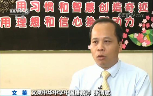 文萊中華中學(xué)中國籍教師張清賦:“ 在這邊上班的話,最關(guān)鍵一點(diǎn),就是說我盡到我的責(zé)任,要把中文知識傳播給更多的華裔或者非華裔的學(xué)生?!?/p>
