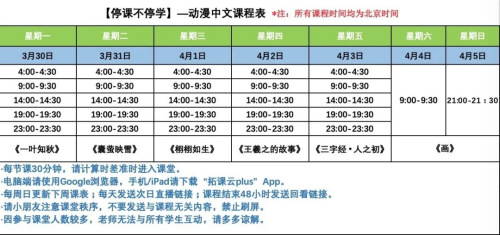 中國華文教育基金會(huì)動(dòng)漫中文課堂公益直播課程第七期課程課表安排如下: