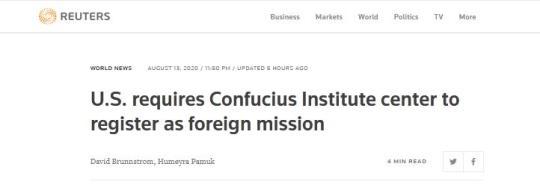據(jù)此前彭博社報道,不具名消息人士早前放風稱,美國國務院最早將于13日當天宣布,要求設立在美國各高校的孔子學院必須登記為“外國使團”。該人士表示,這一決定意味著,孔子學院被認定為“由外國政府實際擁有或有效控制”的機構,將受到與中國大使館和領事館類似的行政管理要求。