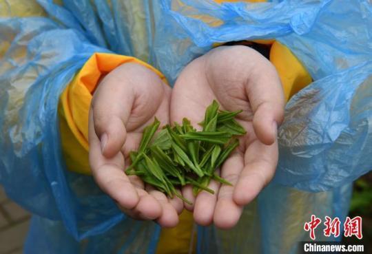 圖為青少年展示從茶山采集的新鮮茶葉。周毅 攝