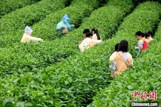 圖為兩岸青少年在茶山上采茶。周毅 攝