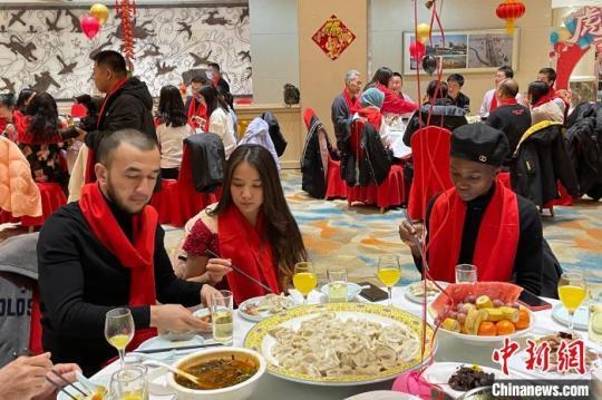 中新網(wǎng)銀川1月28日電 (記者 李佩珊)還有三天將迎來(lái)中國(guó)農(nóng)歷新年“虎年”,新年是闔家團(tuán)圓的日子,可有許多異鄉(xiāng)漂泊的“游子”無(wú)法返家與親人團(tuán)聚。每逢佳節(jié)倍思親,1月28日,寧夏大學(xué)以“親情暖流·迎新春送溫暖”為主題,為來(lái)自俄羅斯、馬來(lái)西亞、尼日利亞、印度尼西亞等14個(gè)國(guó)家和地區(qū)的近百名留學(xué)生以及留校的國(guó)內(nèi)學(xué)生提前慶祝新年。