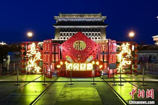 資料圖:圖為東城區(qū)前門步行街北口的景觀小品“四方平安”。中新社記者 田雨昊 攝
