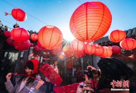 資料圖:北京一家“藏在”四合院里的小咖啡店掛起紅燈籠,營造出濃厚的中國傳統(tǒng)新年氛圍,吸引市民前往“打卡”。 中新社記者 侯宇 攝