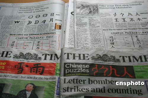 《泰晤士報(bào)》上周開始教讀者學(xué)中文,進(jìn)行最基本的啟蒙引導(dǎo);本周則更是每天都在頭版上專辟“中國紅”色塊,每次都有“中國”二字,而在內(nèi)頁的?喜粌H繼續(xù)教讀者中文入門,還有專文介紹中餐、中醫(yī)、中國游等中國的方方面面。