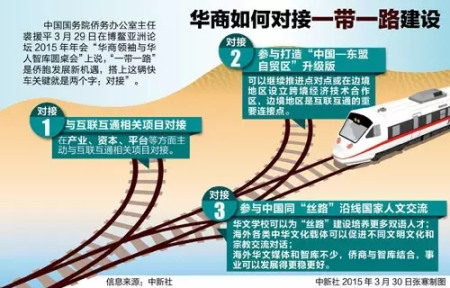 而對于“一帶一路”與華商的關系,中國海外交流協(xié)會常務副會長裘援平去年9月在印尼走訪華商時指出,中國政府提出共建“絲綢之路經(jīng)濟帶”和“21世紀海上絲綢之路”,將為華商創(chuàng)造更多“掘金”機會。她建議華商關注“一帶一路”建設帶來的商機。