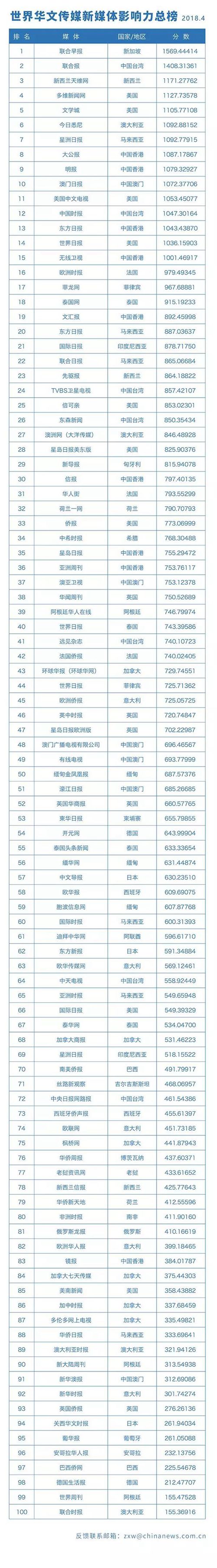 世界華文傳媒新媒體影響力榜單發(fā)布(附說(shuō)明)