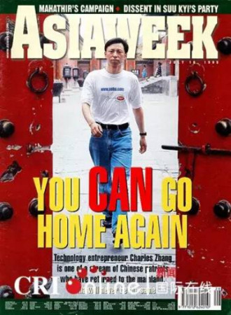 △1997年張朝陽登上《亞洲周刊》雜志封面,上書:你可以回家了(圖片來源:國際在線)