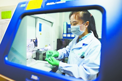 實驗室里擺滿各種先進的醫(yī)學(xué)儀器,工作人員正在忙碌,有的對著顯微鏡觀察樣本,有的對著電腦進行數(shù)據(jù)分析??凳キh(huán)球在生物城有三棟樓,都被塞得滿滿當當。