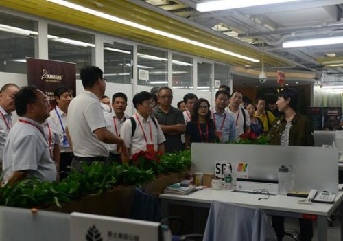 下午,為國服務(wù)團一行又趕往朝陽區(qū)參觀位于光華路的陽光100優(yōu)客工場,這是由華僑創(chuàng)業(yè)代表毛大慶創(chuàng)業(yè)成功的經(jīng)典案例,大家從創(chuàng)意籌備、盈利模式、運行管理、未來設(shè)想等各個方面自由交流,不斷提問和解答,大家在熱烈的氣氛中積極交流互動。