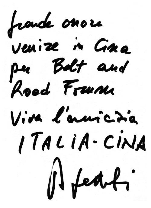 意大利總理真蒂洛尼題詞:非常榮幸去中國參加“一帶一路”論壇,中意友誼萬歲!