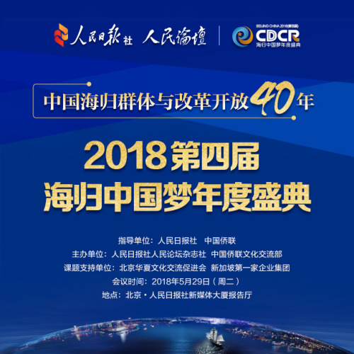 人民論壇網(wǎng)北京訊(記者 常嫦)海歸推動中國,夢想照耀征程。由人民日報(bào)社、中國僑聯(lián)指導(dǎo),人民日報(bào)社人民論壇雜志社與中國僑聯(lián)文化交流部共同主辦的“中國海歸群體與改革開放40年——2018第四屆海歸中國夢年度盛典”將于2018年5月29日在京舉辦。會議邀請全國人大副委員長、全國政協(xié)副主席、相關(guān)部委與地方領(lǐng)導(dǎo)、海歸中國夢年度人物代表、權(quán)威專家學(xué)者、知名企業(yè)家、海歸精英等300余人與會。
