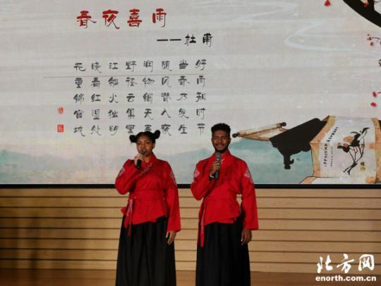 天津北方網(wǎng)訊:5月30日,第十八屆“天財(cái)之夏”留學(xué)生漢語經(jīng)典誦讀大賽上,來自老撾、加蓬、赤道幾內(nèi)亞、哈薩克斯坦、吉爾吉斯斯坦等國家的留學(xué)生輪番登上舞臺(tái),誦讀中國經(jīng)典詩詞,展示他們對(duì)于中國和中國文化的熱愛。
